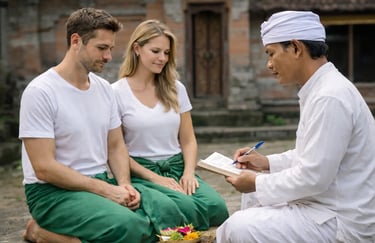 Mebayuh Patemon is a sacred ritual conducted at the home of a Balinese Hindu priest. It involves a personalized reading based on your date of birth, where the priest interprets ancient Balinese Hindu scriptures—knowledge passed down through generations, rooted in spiritual observation and ancestral wisdom.
